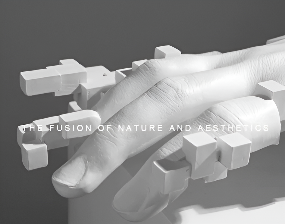 • Abstract resin hand sculpture with mosaic details