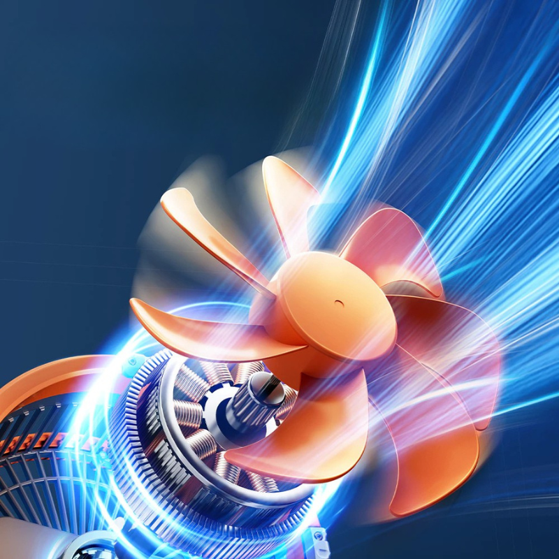 • Adjustable Airflow: Four speed settings with 360° rotation for customized cooling